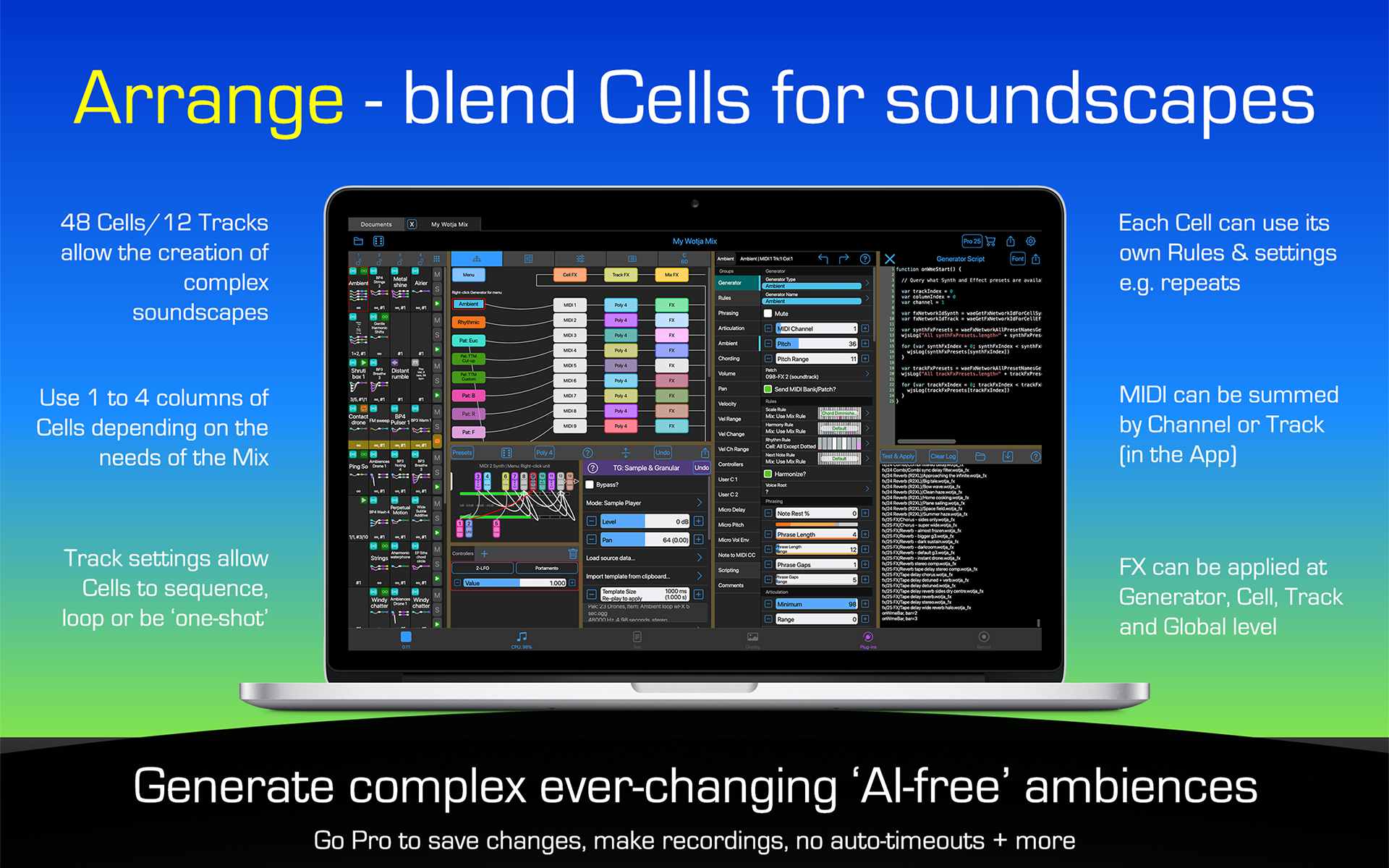 Wotja is a FREE, powerful & 'AI-free' system for Live Generative Music & MIDI.