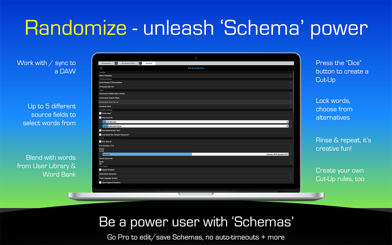 - 'Flow Player' (akin to a live local radio station just for you) to play Schemas for use e.g. as a sleep music aid.