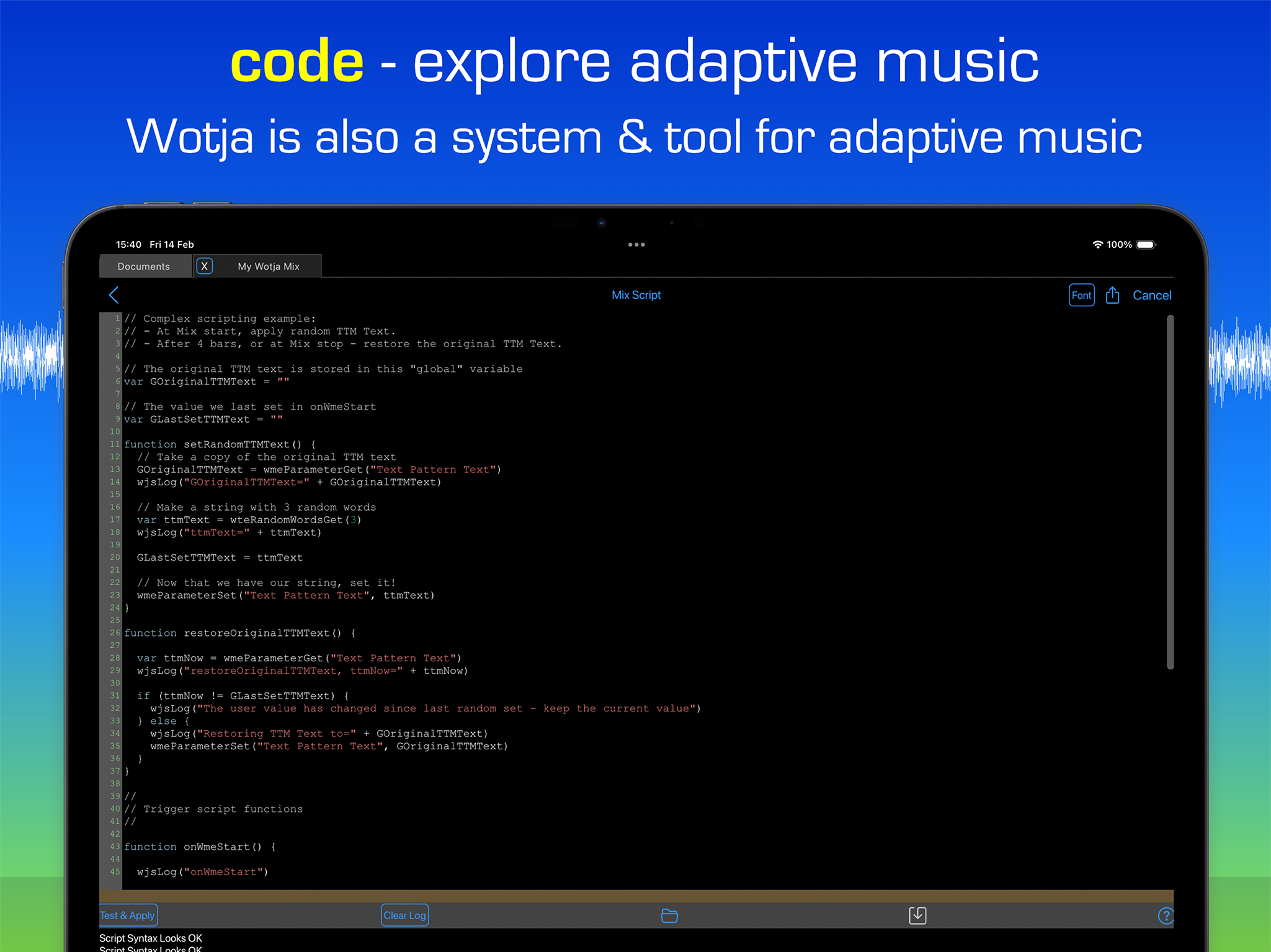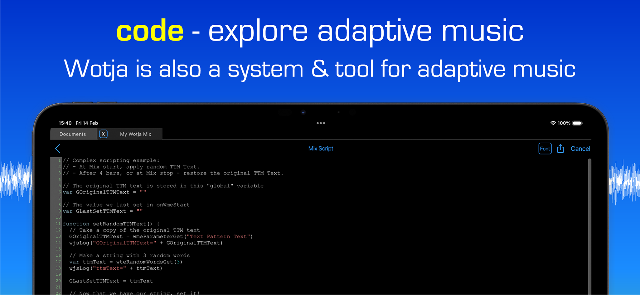 Wotja can get you flowing again as it generates live "in the moment" music, a perfect source of new & fresh ideas.