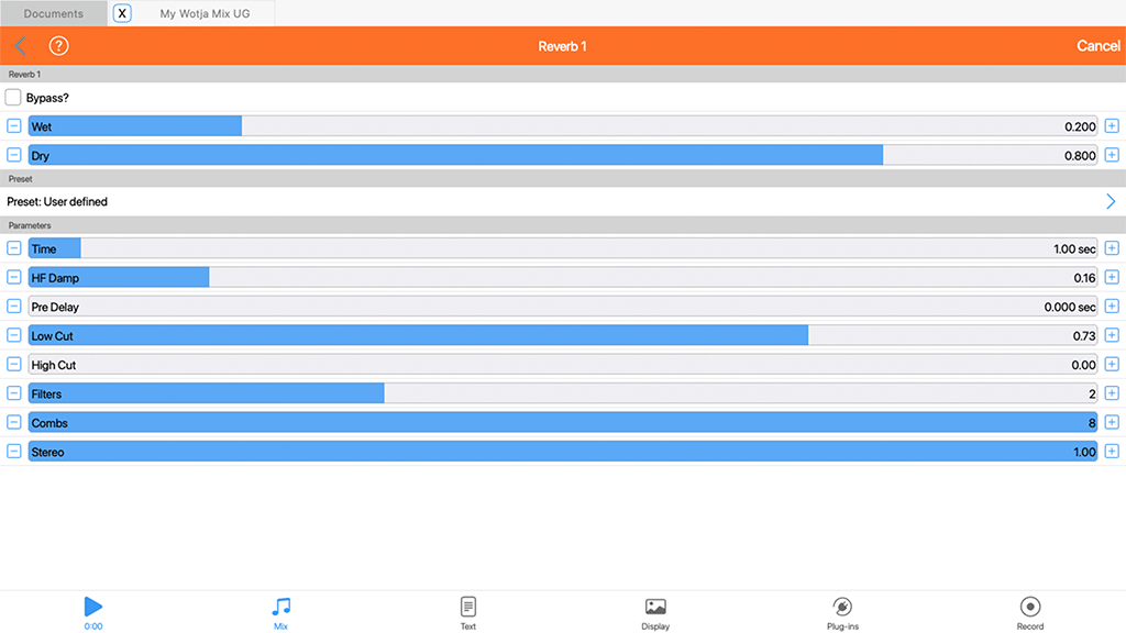 For a final touch you might want to add some reverb. This is best done by using it as a global effect for the entire piece because you might have several voices that you want to treat similarly.