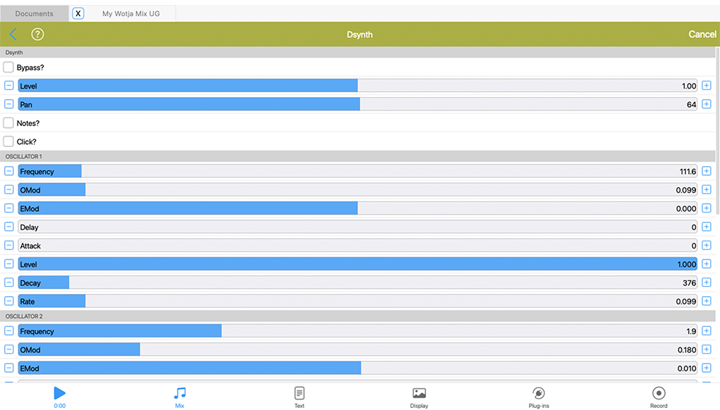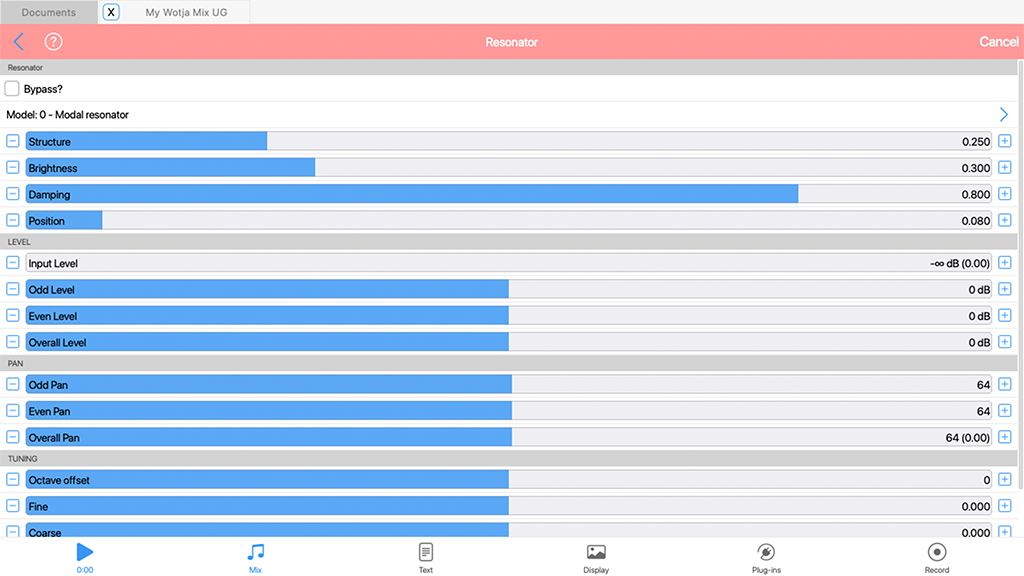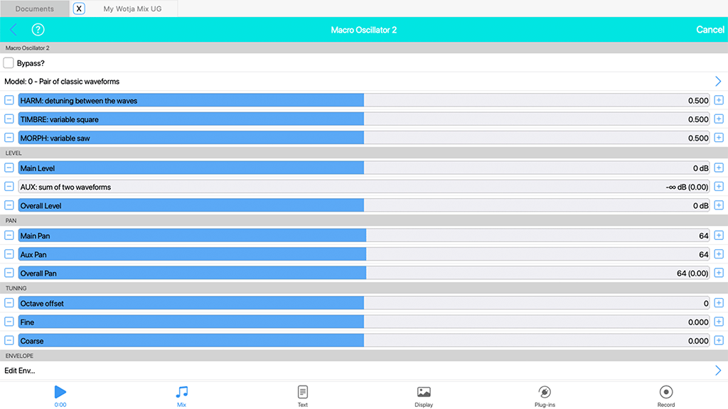 The MO2 unit is new to Wotja 24 and is a tone generator that is used in a Wotja Synth FX chain.