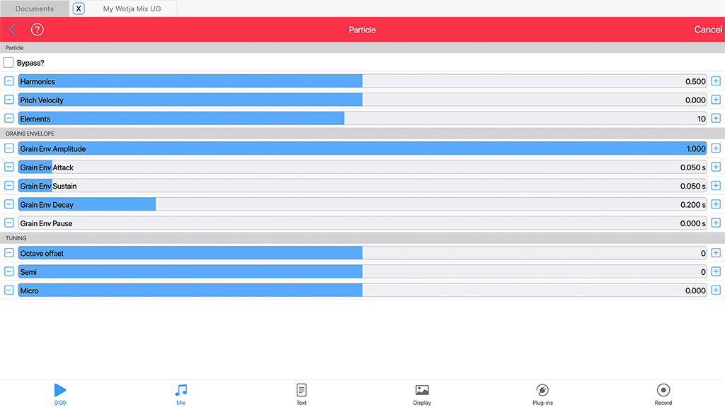 Open the "MyTest" mix/piece you created above, and delete the Synth Network you made. Add a Particle Unit as your only unit for MIDI line 1. And that's it! :)