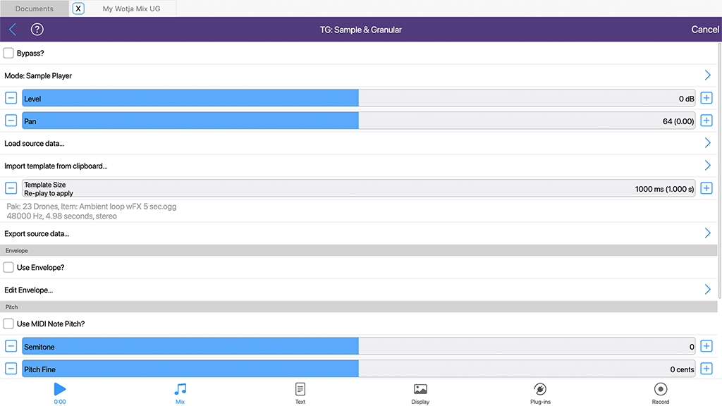 - WAE Sample & Granular Units in Templates can also load external WAV/OGG and Template files located in the Wotja Folder, but on saving the Mix file they are then embedded in the Mix file.