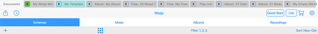 - These are used to generate mix files, 'flows' and albums (all of which use Template) and many are built-in to Wotja, but they can be added/duplicated and edited in the Schema Editor.