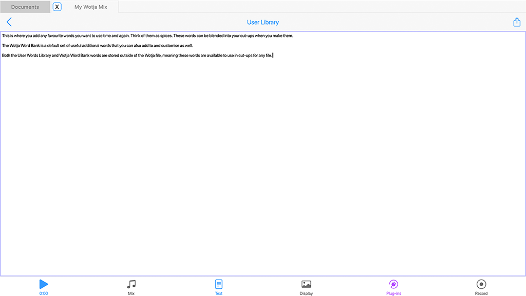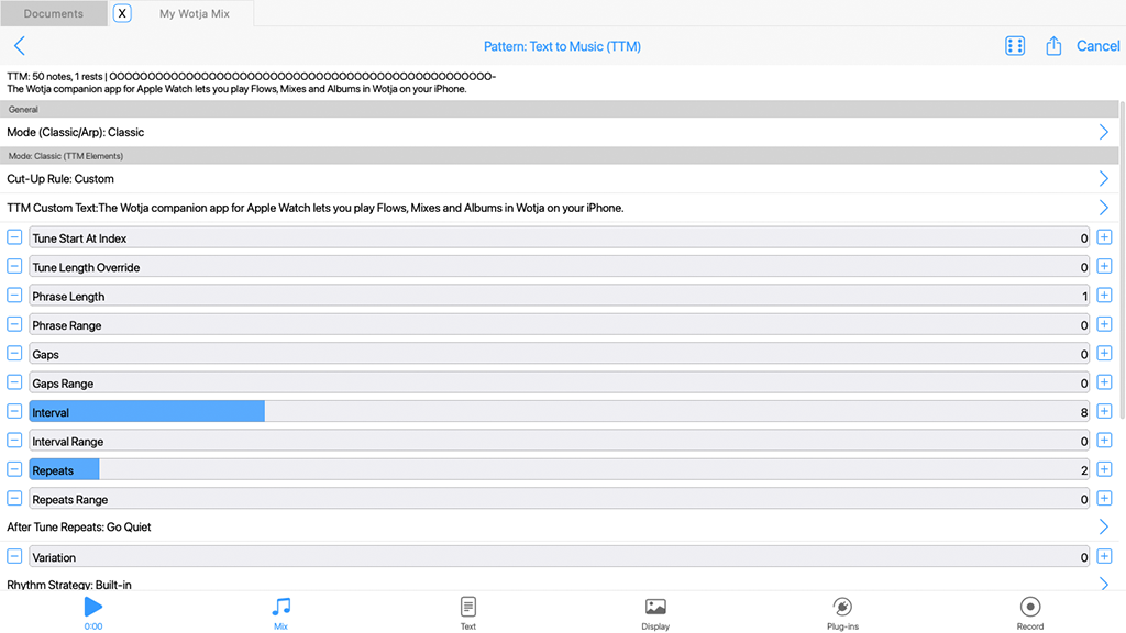 - 'URI Player' to play, imported from clipboard, a shared Wotja URI (WJURI); supports API commands for use by developers of 3rd Party Apps & Games to generate live background music.
