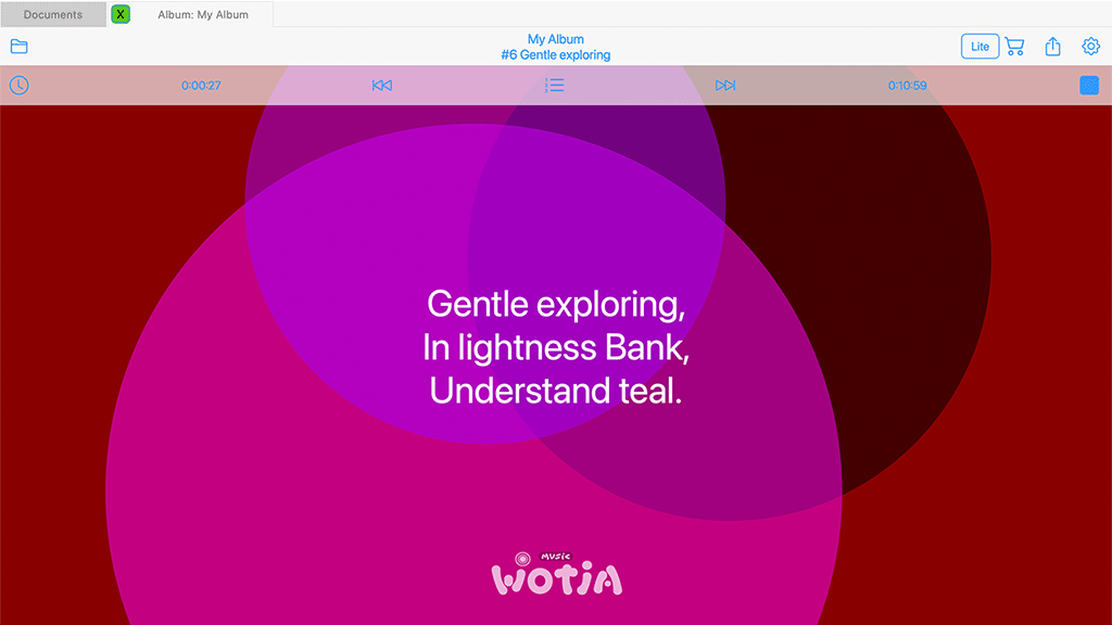 | Changed: Introduced 2nd+ play Lite mode Auto Time-out; simply *restart* Wotja for another 1st play | ||