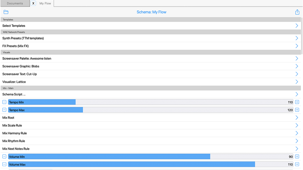 - These are the editable files that generate music and they can be manually populated or populated from Schemas.