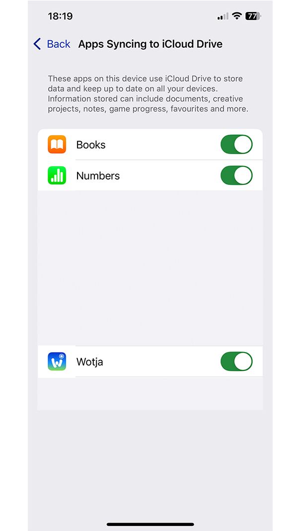 | (Android) After "Import (restore) to Wotja..." is selected, and you have completed the import, an alert is shown telling you how many documents have been imported [25.3] | Yes | Yes |